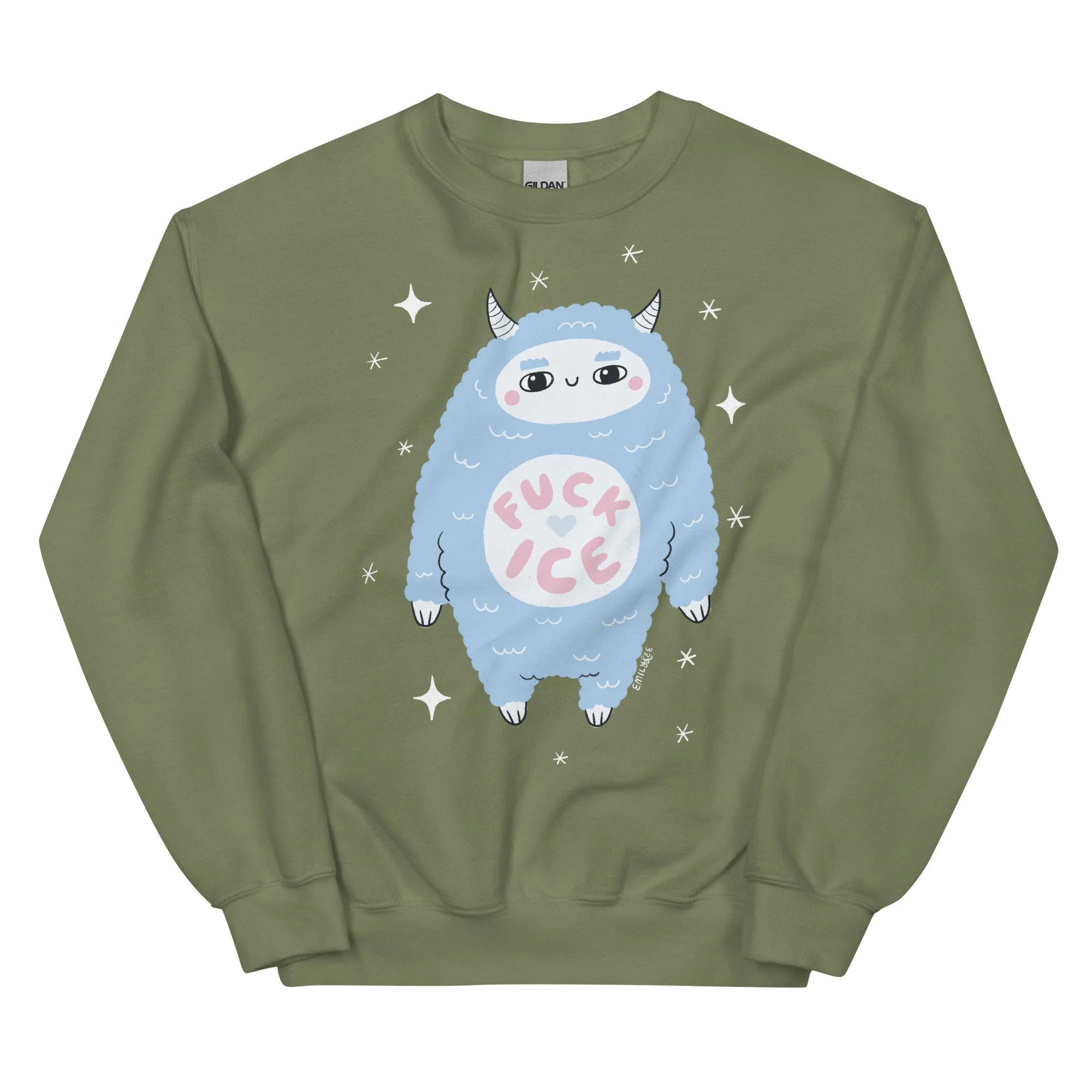 Serve cozy and unbothered activism with this adorable pastel yeti who is 100% done with ICE. It’s creepy cute, it’s chaotic good, and it’s the perfect vibe for anyone who likes their politics loud and their monsters soft.